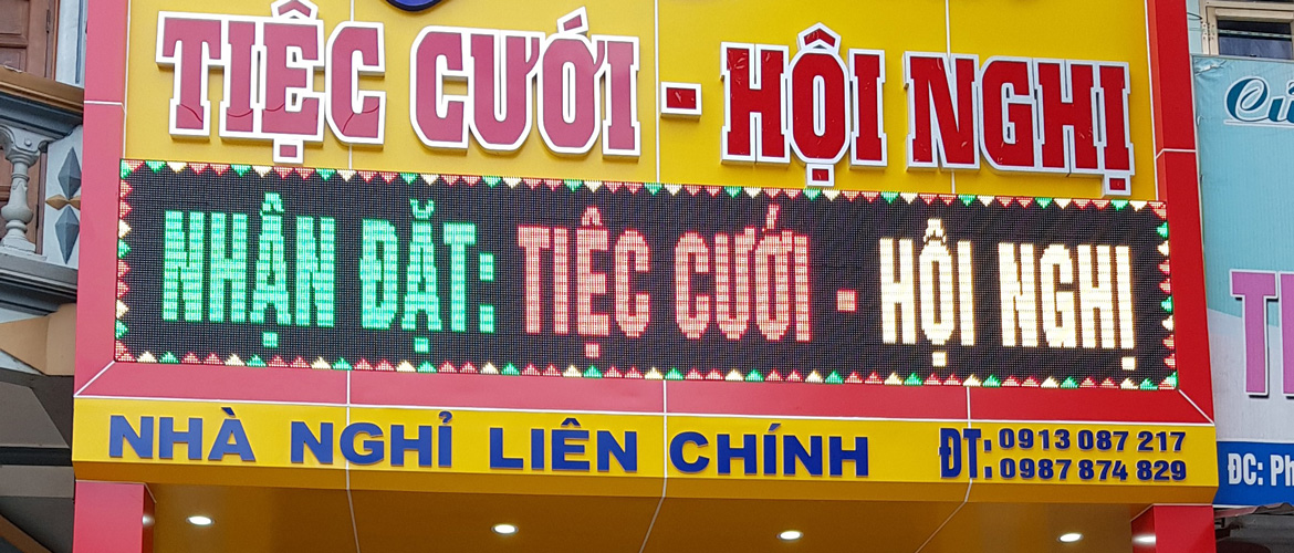 Tổ hợp biển quảng cáo cho nhà hàng Liên Chính gồm biển chữ nổi và biển led.